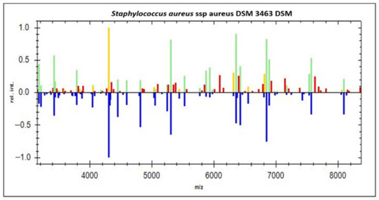 - Josten, M.; Reif, M.; Szekat, C.; Al-Sabti, N.; Roemer, T.; Sparbier, K.; Kostrzewa, M.; Rohde, H.; Sahl, H.G.; Bierbaum, G. Analysis of the matrix-assisted laser desorption ionization-time of flight mass spectrum of Staphylococcus aureus identifies mutations that allow differentiation of the main clonal lineages. J. Clin. Microbiol. 2013, 51, 1809–1817. [Google Scholar] [CrossRef]
