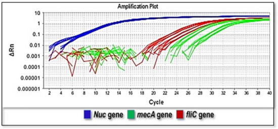 2.5. Molecular Analysis of Staphylococcus aureus and Escherichia coli Strains Using RT-PCR DNA Extraction