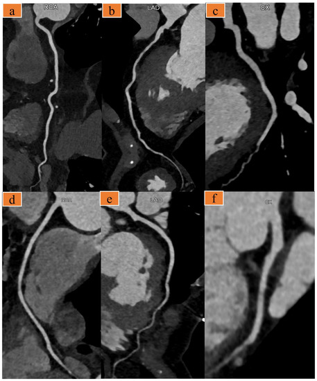 - Abbara, S.; Blanke, P.; Maroules, C.D.; Cheezum, M.; Choi, A.D.; Han, B.K.; Marwan, M.; Naoum, C.; Norgaard, B.L.; Rubinshtein, R.; et al. SCCT guidelines for the performance and acquisition of coronary computed tomographic angiography: A report of the society of cardiovascular Computed Tomography Guidelines Committee: Endorsed by the North American Society for Cardiovascular Imaging (NASCI). J. Cardiovasc. Comput. Tomogr. 2016, 10, 435–449. [Google Scholar] [CrossRef] [PubMed]