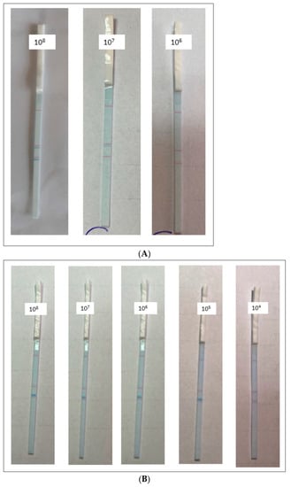 46. Noguera, P.; Posthuma-Trumpie, G.A.; van Tuil, M.; van der Wal, F.J.; de Boer, A.; Moers, A.P.H.A.; van Amerongen, A. Carbon Nanoparticles in Lateral Flow Methods to Detect Genes Encoding Virulence Factors of Shiga Toxin-Producing Escherichia coli. Anal. Bioanal. Chem. 2011, 399, 831–838. [Google Scholar] [CrossRef]