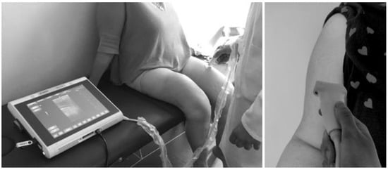 An ultrasound device (MyLab One, Esaote, Genoa, Italy) with a linear array transducer (SL3323, Esaote, Genoa, Italy) with a variable frequency of up to 22 MHz was used for the muscle B-mode ultrasound examination. The US parameters were 70% gain, and the default settings for the grayscale map and the dynamic range were selected. The exported image had a size of 800 × 652 px with 96 dpi. The examiner had more than 4 years of experience in musculoskeletal ultrasound in a clinical context.