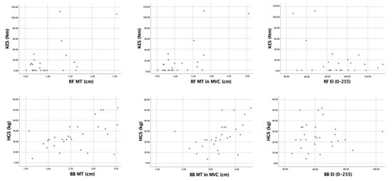 Graphs from the correlation analysis between the ultrasound outcomes and strength.
