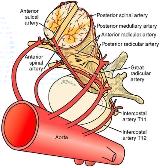 - Radiology Key. Spinal Cord Infarction. 2022. Available online: https://radiologykey.com/spinal-cord-infarction/ (accessed on 13 June 2022).