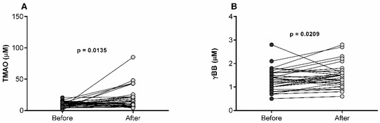4.3. Plasma TMAO and γBB Quantification