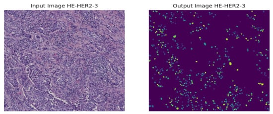 Traditional machine learning (ML) and deep learning (DL) are the two computational techniques for pathological images. ML algorithms, which are frequently utilized in the field of prognostic prediction, can significantly minimize the amount of time that the diagnostic procedure takes. Expert pathologists use pricey microscopes and manual procedures to identify HER2 and its state from H&E and IHC stains [11]. However, they involve human interpretation, and such HER2 status detection techniques are liable to inaccuracy [12]. As a result, scientists worldwide have created a range of automated techniques for classifying HER2 status from IHC and H&E-stains. MRI and ultrasound images were also used in a study to classify HER2 status [13,14]. A Support Vector Machine (SVM) was used there as the approach to identify the HER2 status in MRI images.