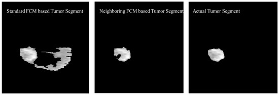 The proposed segmentation method using neighboring FCM has an advantage over hard segmentation in that it retains more information from the original image. In this method, tumor regions were extracted using FCM from the tumorous images by ignoring the non-tumorous images. Figure 9 shows the proposed algorithm 1 used to find the tumor regions from the MR image using neighboring FCM.