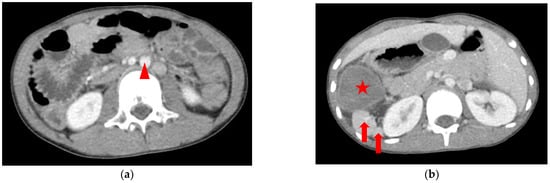 - Wang, Z.; Zhao, Q.; Huang, Y.; Mo, Z.; Tian, Z.; Yang, F.; Wang, Y.; Yao, L. Wandering spleen with splenic torsion in a toddler. Medicine 2020, 99, e22063. [Google Scholar] [CrossRef]