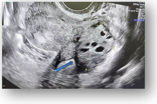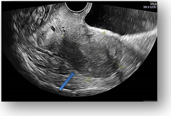 A 43-year-old Romanian female patient (M.P.) presented to the “Cuza Voda” Obstetrics and Gynecology Clinical Hospital from Iasi, reporting hypogastric pain of moderate intensity whose onset started three weeks prior, with radiation in the left lower limb and accompanied by menstrual cycle abnormalities and dysmenorrhea.