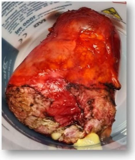 Some authors support the removal of non-infected urachal remnants as an alternative to avoid future emergency surgery because it carries a higher risk such as infection and malignancy []. In contrast, others argue for the potential of urachal remnants’ malignant tissue degeneration and causing the formation of neoplasms, which is essential, especially in those with a history of malignant transformation [,]. However, it would be an aggressive procedure in children, and the possibility is very rare [].