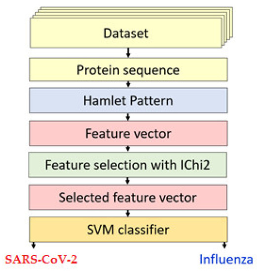 - Using protein sequences, a classification model incorporating the novel pattern was applied for the binary classification of SARS-CoV-2 versus Influenza-A diagnosis. The model attained excellent classification performance, supporting its potential use as an adjunctive screening tool for suspected viral respiratory infections in the current pandemic.