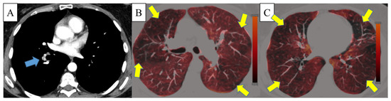 - Tsutsumi, Y.; Iwano, S.; Okumura, N.; Adachi, S.; Abe, S.; Kondo, T.; Kato, K.; Naganawa, S. Assessment of Severity in Chronic Thromboembolic Pulmonary Hypertension by Quantitative Parameters of Dual-Energy Computed Tomography. J. Comput. Assist. Tomogr. 2020, 44, 578–585. [Google Scholar] [CrossRef] [PubMed]