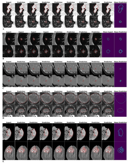 - Menze, B.H.; Jakab, A.; Bauer, S.; Kalpathy-Cramer, J.; Farahani, K.; Kirby, J.; Burren, Y.; Porz, N.; Slotboom, J.; Wiest, R.; et al. The Multimodal Brain Tumor Image Segmentation Benchmark (BRATS). IEEE Trans. Med. Imaging 2015, 34, 1993–2024. [Google Scholar] [CrossRef]