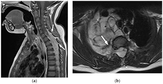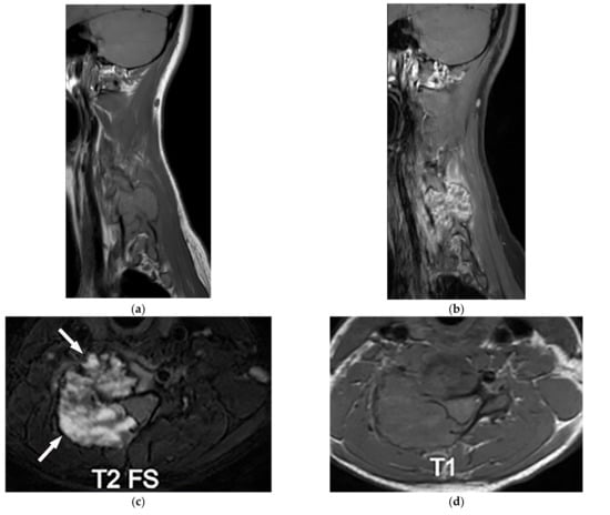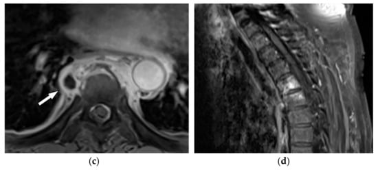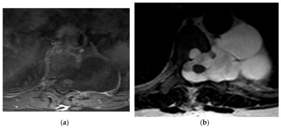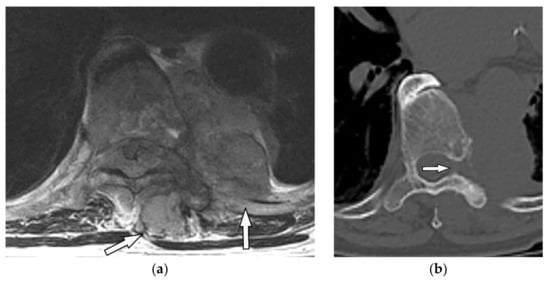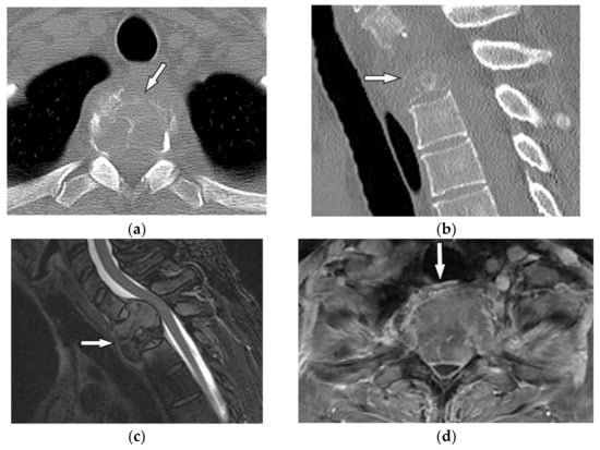 - Kumar, Y.; Gupta, N.; Chhabra, A.; Fukuda, T.; Soni, N.; Hayashi, D. Magnetic resonance imaging of bacterial and tuberculous spondylodiscitis with associated complications and non-infectious spinal pathology mimicking infections: A pictorial review. BMC Musculoskelet. Disord. 2017, 18, 244. [Google Scholar] [CrossRef]