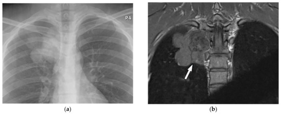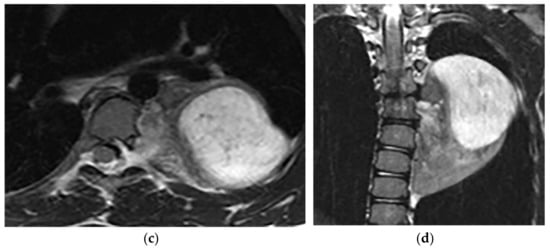 - Nam, S.J.; Kim, S.; Lim, B.J.; Yoon, C.-S.; Kim, T.H.; Suh, J.-S.; Ha, D.H.; Kwon, J.W.; Yoon, Y.C.; Chung, H.W. Imaging of primary chest wall tumors with radiologic-pathologic correlation. Radiographics 2011, 31, 749–770. [Google Scholar] [CrossRef]