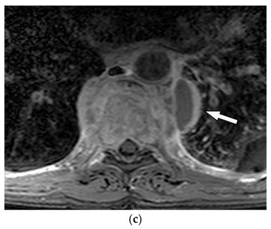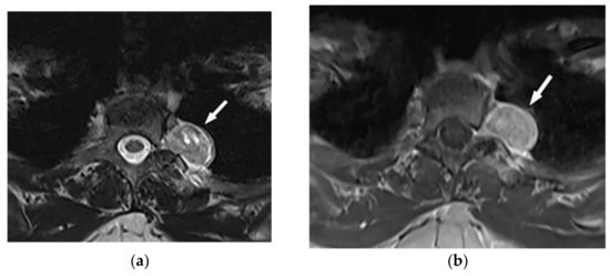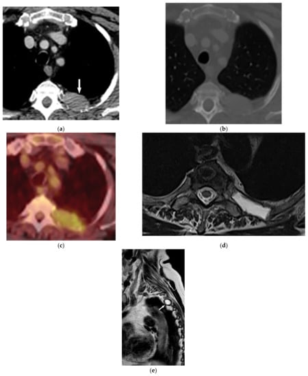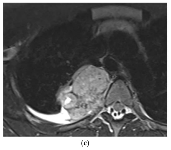- Pavlus, J.D.; Carter, B.W.; Tolley, M.D.; Keung, E.S.; Khorashadi, L.; Lichtenberger, J.P., 3rd. Imaging of thoracic neurogenic tumors. Am. J. Roentgenol. 2016, 207, 552–561. [Google Scholar] [CrossRef]