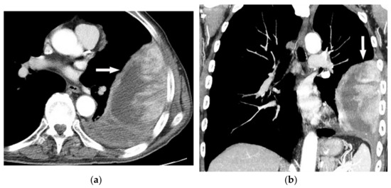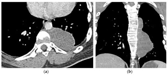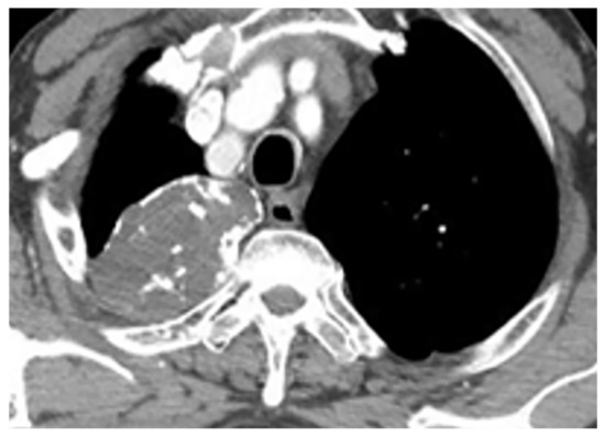 - Gladish, G.W.; Sabloff, B.M.; Munden, R.F.; Truong, M.T.; Erasmus, J.J.; Chasen, M.H. Primary thoracic sarcomas. Radiographics 2002, 22, 621–637. [Google Scholar] [CrossRef] [PubMed]