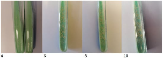 The colony growth on Löewenstein-Jensen solid medium on the 4th, 6th, 8th and 10th day of incubation.