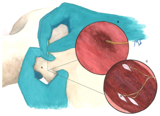 Clinicians use manual palpation to identify TrPs, with “spot tenderness” and “referred pain” among the most common features for TrP identification [6,7]. However, recent research indicates the reliability of manual palpation is questionable and has poor reproducibility for eliciting TrP-related symptoms [8]. For example, needling of TrPs was shown to produce referred pain and local twitch responses (LTR) when prior manual palpation failed to do so [9,10]. It has been traditionally accepted that maximal target specificity of the dry needling technique is advisable when an LTR is the procedural goal [11]. Nevertheless, it has been recently observed that, although the LTR elicited during dry needling can be clinically relevant, clinical outcomes on pain and function are not directly related just to the fact of eliciting LTR [12,13]. Accordingly, the therapeutic value of the LTR is a current hotly debated topic in the literature [14].