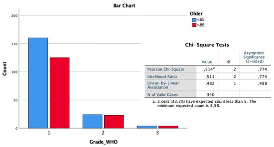 Both a two-group stratification of <65 and >65 years and a division into the four age groups were considered for the outcome study in relation to the radiological findings (data resumed in Table 2).