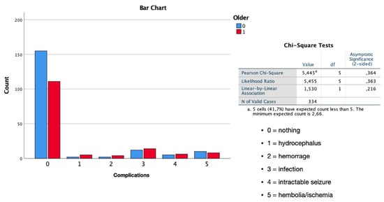While operative complications (intracranial hematoma, hydrocephalus, and focal neurologic deterioration) are strongly associated with surgical strategy and skill, non-operative complications, such as infection, atelectasis, and deep venous thrombosis, are highly associated with patients’ general condition and underlying diseases [], correlated with age.