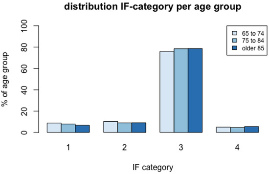Figure 2 summarises the frequencies of IF categories per region. A detailed summary of the total numbers and proportions of IFs per category in the respective regions is given in Table S1. Category 1 IFs were most frequently present in the CT scans of the chest and abdomen; category 2 IFs were most frequently found in the neck and chest. Category 3 IFs were most frequently present in the head and spine. Increasing age is associated with the prevalence of an IF (OR: 1.053, 95% CI: 1.042–1.064, p < 0.001), and in the age group of ≥85 years, an IF was located in 82.7% of patients.