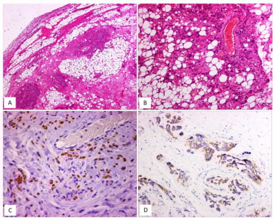 - Magro, G.; Salvatorelli, L.; Angelico, G.; Vecchio, G.M.; Caltabiano, R. Lipomatous angiomyofibroblastoma of the vulva: Diagnostic and histogenetic considerations. Pathologica 2014, 106, 322–326. [Google Scholar]