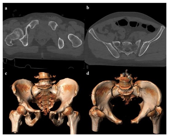 - Stambaugh, L.E., III; Blackmore, C.C. Pelvic ring disruptions in emergency radiology. Eur. J. Radiol. 2003, 48, 71–87. [Google Scholar] [CrossRef]