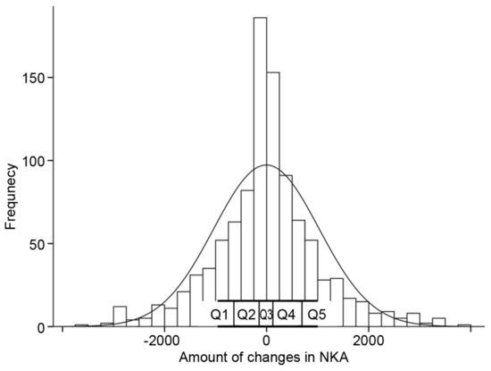 The distribution of the natural killer cell activity changes. Q1–5 represents quintiles of change amount in natural killer cell activity. NKA, natural killer cell activity.