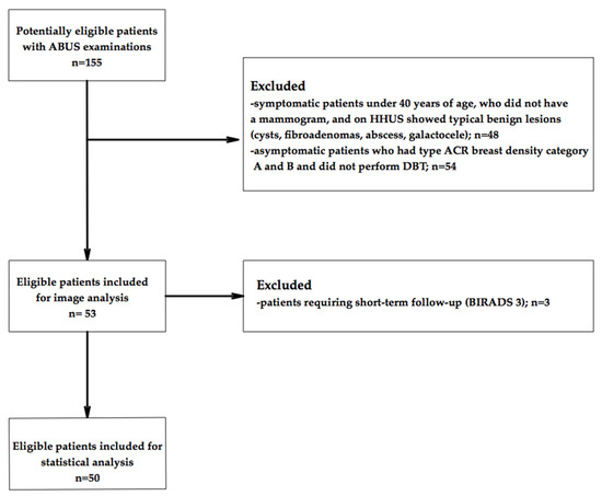 Between January 2017 and October 2018, images of 155 female patients who underwent ABUS examinations were retrieved from the database.