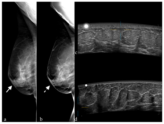 Mammography is the basic and most frequently used standard method currently adopted for breast cancer screening [1]. In cases of positive screening mammography or in symptomatic patients, the diagnostic evaluation may consist of additional mammographic views (spot compression, magnification), ultrasound, and even contrast-enhanced imaging techniques such as dynamic contrast-enhanced magnetic resonance imaging (DCE MRI) or contrast-enhanced spectral mammography (CESM).