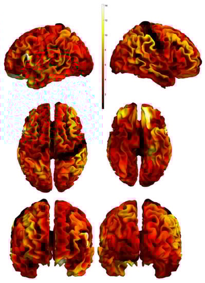 - Worsley, K.J.; Poline, J.B.; Friston, K.J.; Evans, A.C. Characterizing the Response of PET and FMRI Data Using Multivariate Linear Models. Neuroimage 1997, 6, 305–319. [Google Scholar] [CrossRef]