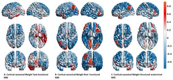 The results from the MLM are presented in Figure 3 with their canonical weighting for the three modalities (structural MRI, functional MRI, resting-state MRI).
