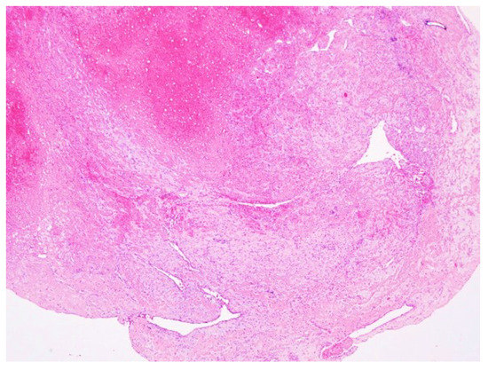 After analyzing the thrombus, we found vascular channels lined by the endothelium (Figure 5), also a suggestion of an inflammatory reaction.