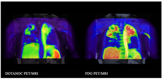 - Naftalin, C.M.; Leek, F.; Hallinan, J.T.P.D.; Khor, L.K.; Totman, J.J.; Wang, J.; Wang, Y.T.; Paton, N.I. Comparison of 68Ga-DOTANOC with 18F-FDG Using PET/MRI Imaging in Patients with Pulmonary Tuberculosis. Sci. Rep. 2020, 10, 1–9. [Google Scholar] [CrossRef]