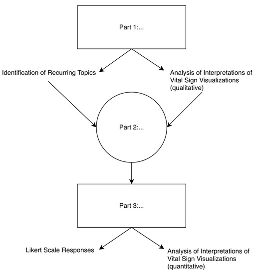 This was an investigator-initiated, prospective, single-centre, mixed qualitative and quantitative study conducted at the University Hospital Zurich in Switzerland, a tertiary care facility. This study consisted of three separate parts; a flowchart is provided as Figure 1. The first, a qualitative study, aimed to explore anaesthesia providers’ first impressions regarding the original, unrevised design of Visual-Patient-avatar. Structured interviews were conducted with Visual-Patient-avatar-naive subjects. After a qualitative interview analysis, the second study part, the redesign followed, in which the avatar’s design was adapted based on the obtained results. The third, final part of the study aimed to quantify general acceptance of the new, revised design, and the level of intuitive recognition of the redesigned vital sign visualisations. The first and third study parts included participants who worked either as resident or staff anaesthesiologists, or as anaesthesia nurses in the designated study centre. Only participants without previous contact with Visual-Patient-avatar were included.