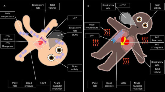 - Tscholl, D.W.; Handschin, L.; Neubauer, P.; Weiss, M.; Seifert, B.; Spahn, D.R.; Noethiger, C.B. Using an animated patient avatar to improve perception of vital sign information by anaesthesia professionals. Br. J. Anaesth. 2018, 121, 662–671. [Google Scholar] [CrossRef] [Green Version]