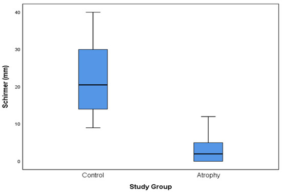 Data were analyzed using the SSPS software (SSPS Science, Chicago, IL, USA). Comparison of “modified Schirmer test” results between the two groups was performed using a t-test. Correlation analysis was performed using Pearson’s rank correlation. Statistical significance was set at p < 0.05.