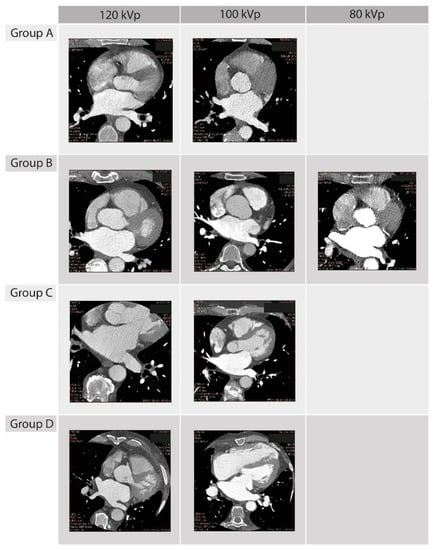 - Hlaihel, C.; Boussel, L.; Cochet, H.; Roch, J.A.; Coulon, P.; Walker, M.J.; Douek, P.C. Dose and image quality comparison between prospectively gated axial and retro-spectively gated helical coronary CT angiography. Br. J. Radiol. 2011, 84, 51–57. [Google Scholar] [CrossRef] [PubMed]