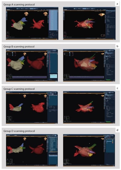 - Wagner, M.; Butler, C.; Rief, M.; Beling, M.; Durmus, T.; Huppertz, A.; Voigt, A.; Baumann, G.; Hamm, B.; Lembcke, A.; et al. Comparison of non-gated vs. electrocardiogram-gated 64-detector-row computed tomography for integrated electroanatomic mapping in patients undergoing pulmonary vein isolation. Europace 2010, 12, 1090–1097. [Google Scholar] [CrossRef]