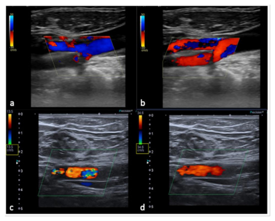 To avoid errors, a thorough understanding of the functionality and underlying mechanics of the US equipment is required. The goal should always be to produce the highest possible image quality by employing a check-list procedure to configure the correct system settings as well as the correct Doppler parameters, which are critical for interpreting clinical US findings (Table 2, Figure 14 and Figure 15) [6,9,10,11,12].