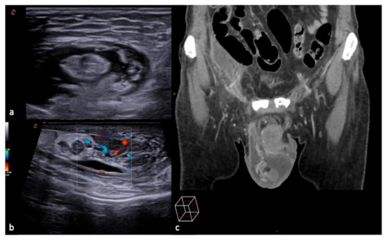 - Di Serafino, M.; Acampora, C.; Iacobellis, F.; Schillirò, M.L.; Borzelli, A.; Barbuto, L.; Oliva, G.; Pezzullo, F.; Segreto, S.; Vallone, G.; et al. Ultrasound of scrotal and penile emergency: How, why and when. J. Ultrasound 2021, 24, 211–226. [Google Scholar] [CrossRef] [PubMed]