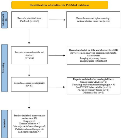 Chicago/Turabian StyleBijlstra, Okker D., Maud M. E. Boreel, Sietse van Mossel, Mark C. Burgmans, Ellen H. W. Kapiteijn, Daniela E. Oprea-Lager, Daphne D. D. Rietbergen, Floris H. P. van Velden, Alexander L. Vahrmeijer, Rutger-Jan Swijnenburg, and et al. 2022. "The Value of 18F-FDG-PET-CT Imaging in Treatment Evaluation of Colorectal Liver Metastases: A Systematic Review" Diagnostics 12, no. 3: 715. https://doi.org/10.3390/diagnostics12030715