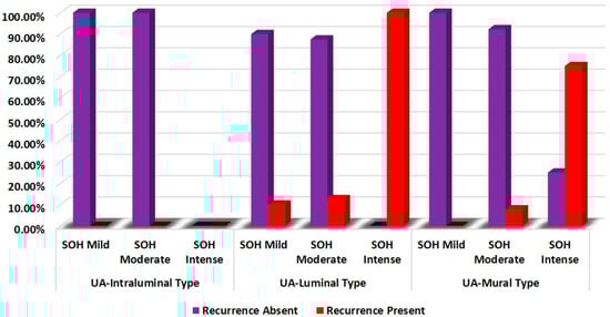 SOH showed a significant statistical correlation with the recurrence of UA-L and UA-M (p = 0.001) (Table 2 and Figure 1).