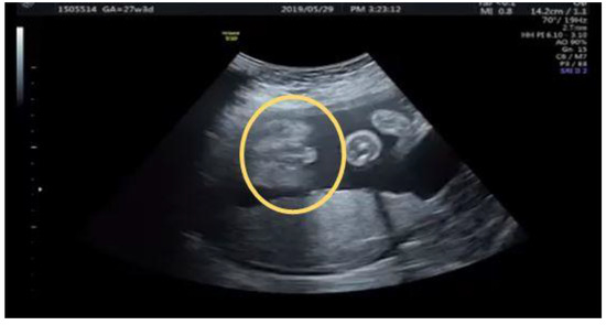 The patient developed preeclampsia at 34 + 5 weeks with cesarean delivery of a male baby weighing 1944 g. A first degree hypospadias was confirmed postnatal (Figure 4).