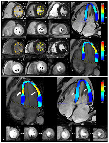 - Pierpaolo, P.; Rolf, S.; Manuel, B.-P.; Davide, C.; Dresselaers, T.; Claus, P.; Bogaert, J. Left ventricular global myocardial strain assessment: Are CMR feature-tracking algorithms useful in the clinical setting? Radiol. Med. 2020, 125, 444–450. [Google Scholar] [CrossRef] [PubMed]
