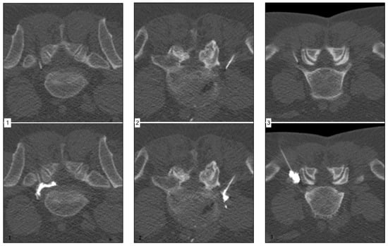 Interestingly, a number of previous studies failed to show a significant correlation between the quality of contrast agent distribution and clinical effect in image-guided percutaneous infiltrations [32,33]. However, it is comprehensible that a precise delivery of the pharmaceutical agent to the site of neural impingement is pivotal for treatment efficacy and most certainly facilitated by high-resolution three-dimensional imaging of the anatomical target [34,35,36].