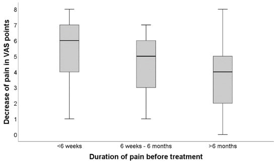 Patients who had acute (<6 weeks), subacute (6 weeks–6 months) and chronic pain (>6 months) prior to CT-guided percutaneous infiltration were each analyzed as separate subgroups. For each subgroup, the treatment effect according to VAS and technical success were assessed independently.