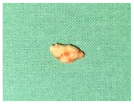 - Tomomichi, O.; Jouji, N.; Yoshihiko, M.; Shigeaki, Y.; Takayuki, N.; Shiori, U.; Toshiro, T. A Case of Sialolithiasis in a Child. J. Clin. Pediatr. Dent. 2007, 31, 139–141. [Google Scholar]