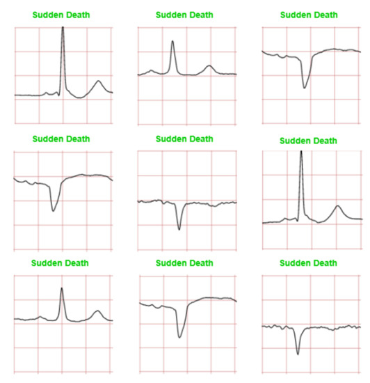 Prediction for ‘sudden death’ ECG waveforms. (Note: red and green title indicated incorrect and correct prediction, respectively).