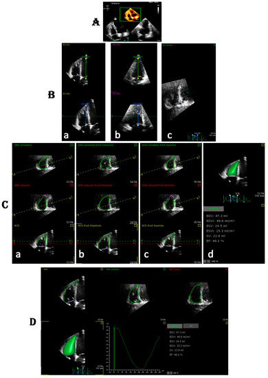 - Surkova, E.; Muraru, D.; Genovese, D.; Aruta, P.; Palermo, C.; Badano, L.P. Relative Prognostic Importance of Left and Right Ventricular Ejection Fraction in Patients With Cardiac Diseases. J. Am. Soc. Echocardiogr. 2019, 32, 1407–1415. [Google Scholar] [CrossRef] [PubMed]